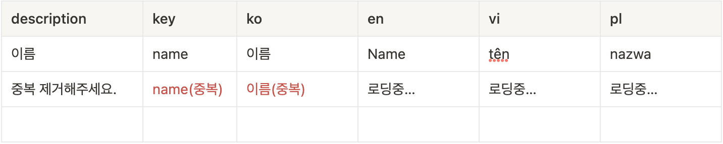 i18n 초기 세팅 중에 발견한 글이 정말 많은 도움이 되었는데요. 바로 TOAST 기술 블로그의 국제화(i18n) 자동화 가이드입니다. 이 글에서 구글 스프레드시트로 번역 콘텐츠를 관리하고 Google API를 통해 데이터를 추출하여 i18n resource로 변환하는 등의 내용이 소개되었는데요.